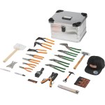 | Työkalusarja sisältää | Merkkauskynä, Peltisakset, suora, Pihdit, Taitettava viivamitta, Tarttuvat pihdit, Vasara |